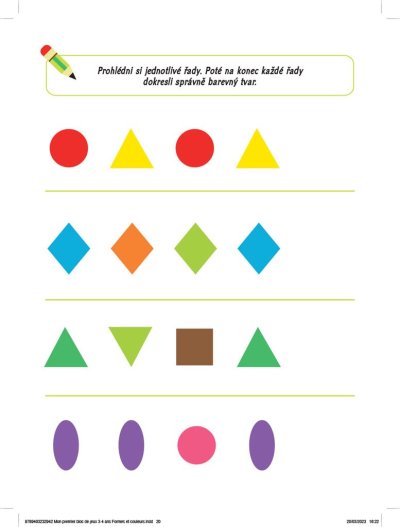 Tento zábavný blok s vytrhávacími stránkami nabízí nejrůznější aktivity na učení a rozpoznávání tvarů a barev. Aktivity zabaví děti, které si procvičí motoriku, představivost a logické uvažovaní. Vybarvuj obrázky, obtahuj linie, hledej cesty či spojuj obrázky!
