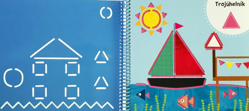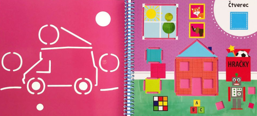 Trojúhelník, kruh, vlnky nebo klikaté čáry. Nakresli si svůj obrázek ze všech možných tvarů. Šablony z knihy můžeš používat stále dokola!