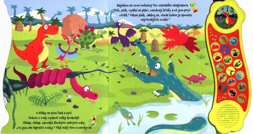 Veselá knížka s celostránkovými ilustracemi a krátkým vyprávěním plným obřích dinosaurů, která je doplněna tlačítky s 18 nevšedními zvuky. Je krásný den a malý Dino si hraje se svými dinosauřími kamarády. Jenže místo pořádného dinosauřího řevu ze sebe vydává jen tiché pípání. Zapojte se do prehistorického příběhu malého Dina, který se setkává s nejhlučnějšími tvory, jací se kdy v dějinách objevili. Naučí se řvát stejně hlasitě jako oni? Tato knížka s veselými celostránkovými ilustracemi obsahuje krátké vyprávění plné obřích pradávných tvorů a hlavně zvuků, které děj příběhu skvěle doplňují. Kniha obsahuje tři výměnné baterie. Počet stran: 8 Vazba: leporelo zvukové ISBN: 978-80-256-1597-3