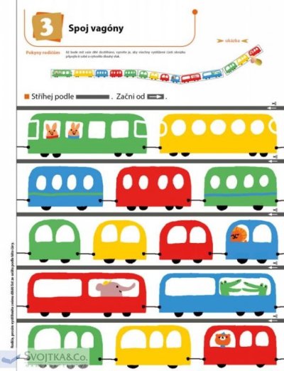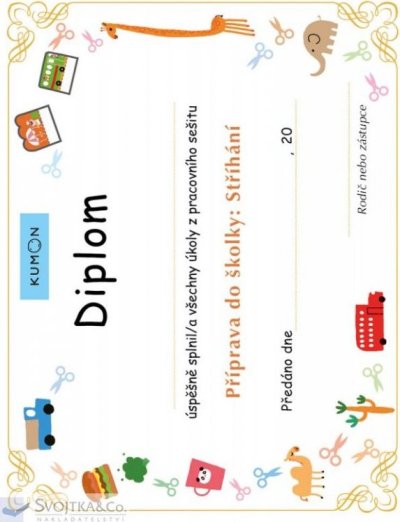 nůžky jsou jedním z prvních nástrojů, které vaše dítě používá a se kterým se setká nejpozději ve školce proto je důležité naučit jej, jak nůžky správně držet a bezpečně s nimi zacházet v tomto sešitě, založeném na výukové metodě Kumon, se dítě učí stříhat podle rovných a zakřivených čar náročnost jednotlivých cvičení se pozvolna zvyšuje, dítě získává sílu v prstech a je při stříhání stále obratnější sešit je vytištěn na kvalitním pevném papíře uzpůsobeném pro snadné a úhledné stříhání postupem od jednoduššího ke složitějšímu je dítě motivováno a není na něj vyvíjen žádný tlak, který by jej frustroval samo chce pokračovat v procvičování a na konci sešitu je jeho pokrok znatelný