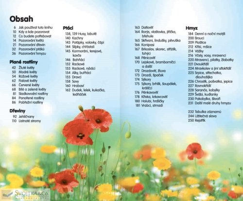 Tento kapesní průvodce přírodou je sestaven nejlepšími odborníky, obsahuje podrobné a názorné ilustrace a je navržen tak, aby bylo jeho používání při toulkách přírodou jednoduché. Je zde podrobně popsáno a barevně vyobrazeno více než 500 druhů květin, stromů, ptáků a hmyzu. Tato knížka se jistě stane neodmyslitelným společníkem pro každého, kdo si chce vychutnat procházky v přírodě a současně chce na svých cestách snadno najít kvalifikované odpovědi na věčnou otázku "Co je to?".