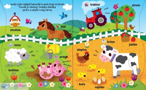 Tato interaktivní knížka s veselými celostránkovými ilustracemi a jednoduchým textem je plná zvířátek, strojů a věcí ze světa kolem nás, ale hlavně obsahuje 18 zvuků, které krátké vyprávění skvěle doplňují. Je ideální k výuce prvních slov formou hry. Vaše děti si zamilují čtení a učení prvních slůvek společně s mačkáním tlačítek! Stačí jen najít odpovídající obrázek, pojmenovat ho a stisknout hned budete vědět, jak pejsek štěká, auto troubí, prasátko chrochtá, traktor drnčí, voda šplouchá, zvonek kola cinká, ptáček cvrliká a mnoho dalšího. No řekněte, může být učení prvních slůvek ještě zábavnější? Kniha obsahuje tři výměnné baterie. Počet stran: 8 Vazba: Leporelo Rok vydání: 2015 ISBN: 978-80-256-1687-1 Ilustrační video