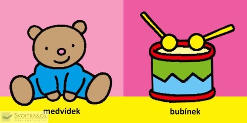 Domeček, jablko, banán, medvídek, bubínek, míč, dárek, list, strom, sluníčko, měsíček, lodička, mašinka, autíčko, muchomůrka, kytička, třešně, zmrzlina, konvička, kyblíček v této knížce vaše děti najdou jednoduché barevné kresbičky některých věcí, které mohou vidět kolem sebe a naučí se je pojmenovávat. A navíc, knížka je velká tak akorát do dětské ručky!