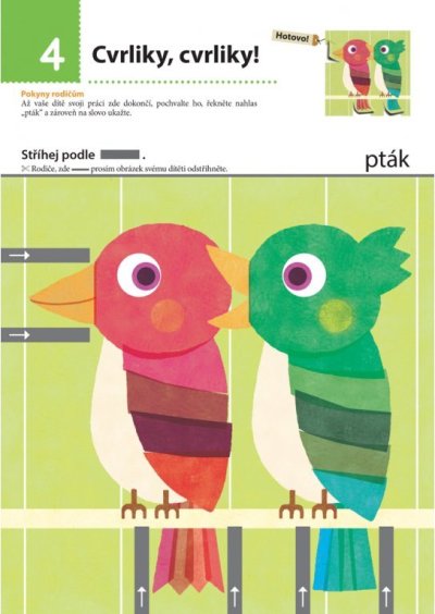 Tento pracovní sešit je určen dětem, které dokončily sešit Stříhej papír! Úroveň aktivit v tomto sešitě je o něco obtížnější než u aktivit z předcházejícího sešitu. Vaše dítě si posílí prsty a bude zručnější a obratnější. To mu pomůže se správným držením a používáním tužky. Cílem tohoto pracovního sešitu je, aby se dítě zdokonalilo v práci s nůžkami a zlepšilo své motorické schopnosti. Pokud vaše dítě umí zacházet s nůžkami a stříhá přesně dle vyznačených čar, pak si již osvojilo základy práce s nůžkami. U malých dětí se jejich schopnost pracovat s nůžkami obvykle vyvíjí postupně. Cvičení v tomto sešitě jsou sestavena od jednoduchých aktivit k obtížnějším, takže dítě postupuje dále až poté, co ovládá předchozí úroveň dané dovednosti. Možná si myslíte, že není bezpečné dát dětem do ruky nůžky, ale už jen z tohoto důvodu je velmi důležité naučit je, jak správně s nůžkami zacházet.