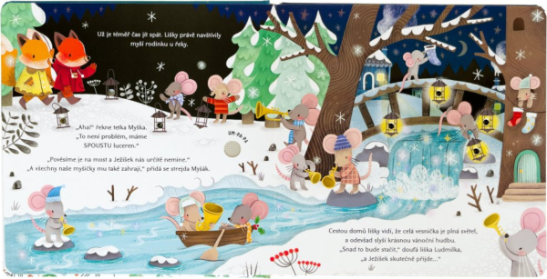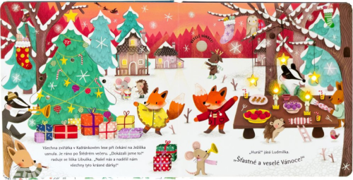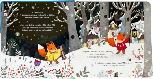 V lese je moc tma a ticho. Co takhle rozvěsit pár světýlek a zahrát Ježíškovi nějakou vánoční hudbu? Skvělý nápad! Zbývá jen zapojit všechna ostatní zvířátka. A taky tebe! Pomoz lištičkám rozzářit a rozeznít les. Stačí stisknout tlačítko a hned uslyšíš nádherné zvuky a budeš moct pozorovat zářící světýlka v této kouzelné knize s vánočním příběhem. rok vydání: 2022 počet stran: 10 ISBN: 978-80-256-3220-8 pro provoz jsou třeba baterie 3x LR1130 (jsou součástí balení)