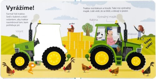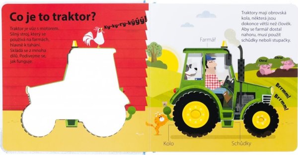 Proč je traktor tak užitečný? A z jakých dílů se skládá? Leporelo pro malé farmáře obsahuje ilustrace s výřezy a jednoduché, základní informace o traktorech.