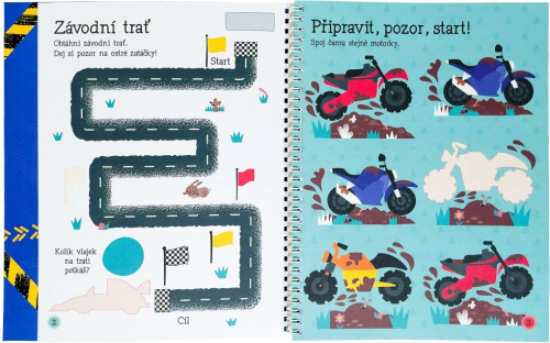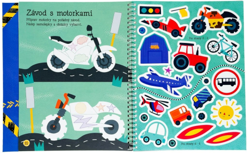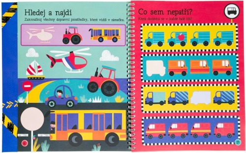 Užij si spoustu zábavy s knihou aktivit. Procvič si nalepování, obtahování, spojování, hledání rozdílů či počítání. Na stránkách uvidíš obrysy obrázků s čárkovanými linkami, na které budeš lepit odpovídající samolepky. Všechny ostatní samolepky můžeš dle vlastní představivosti nalepit, kamkoliv budeš chtít. V knize najdeš také zábavnou rozkládací scenérii k vybarvení a dolepení úžasných samolepek s dopravními prostředky a s vytlačovací vesmírnou skládačkou, s visačkou na dveře, s dominem a s dopravními značkami. Počet stran: 32 + 4 strany se samolepkami Vazba: Spirála Rok vydání: 2024 ISBN: 978-80-256-3657-2