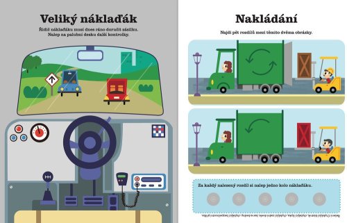 Vozidla jsou zkrátka všude! Na silnicích, na vodě i ve vzduchu. V této knize s více než 40 aktivitami a hrami a 2000 samolepkami se o tom můžete přesvědčit. Dokonči bagry, hledej rozdíly, spočítej kužely či vybarvi traktor. Nechybí ani spousta úkolů na nalepování samolepek, kterých je v knize více než dost! Samolepky můžete nalepit na příslušné stránky, doplnit s nimi scenérie nebo popustit uzdu fantazii a vymyslet si vlastní příběhy. Kniha zabaví vaše malé zvědavce na dlouhé hodiny a též pomůže s rozvojem jemné motoriky a představivosti.