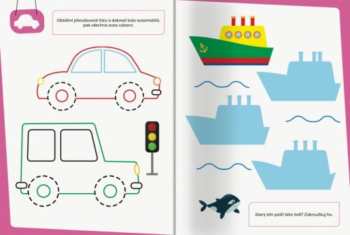 Chceš si kreslit, vybarvovat nebo si hrát? V tomto sešitě můžeš dělat všechno dohromady: vybarvit modře děti, které mají brýle, dokreslit kaktus a zakroužkovat jídlo, které je červené. Nachystej si pastelky a připrav se na mnoho chvil zábavy díky spoustě jednoduchých her!