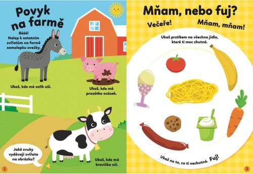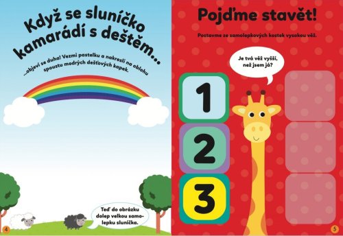 Neváhej a pusť se do dobrodružství s novými kamarády s touto knihou plnou aktivit s více než 40 samolepkami. Dolep zvířátka na farmu, dokresli dešťové kapky nebo hledej zatoulaná zvířátka na zahradě. Každá aktivita je vytvořena tak, aby u dětí rozvíjela jemnou motoriku a představivost a naučila je umět si s úkoly poradit. Roztomilé ilustrace, jasné a zábavné zadání děti motivuje a vybízí, aby úkoly a hry řešily samy a hledaly řešení. Práce se samolepkami a pevné stránky s vytlačovacími obrázky podporují koordinaci ruky a oka a napomáhají také dětem s fantazií a kreativitou.
