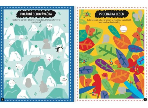 Tato kniha plná hledaček a úloh, které zaujmou každou chytrou hlavičku, podporuje tvořivé hraní i fantazii s vytlačovacími obrázky a více než 250 samolepkami. S touto knihou plnou aktivit se děti rozhodně nudit nebudou! Zjistí, jak mají bystré oči, vydají se hledat zvířátka v lese, prozkoumají podmořský svět, s dinosaury zavítají do dob pravěku a ještě spoustu dalšího! Úkoly vhodně uzpůsobené věku dítěte napomáhají s koordinací oka a ruky, rozvíjí logické myšlení a podporují tvořivé hraní. V knize malí zvědavci naleznou i vytlačovací pexeso a více než 250 samolepek, které mohou použít v této knize nebo je nalepit, kamkoli budou chtít.