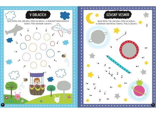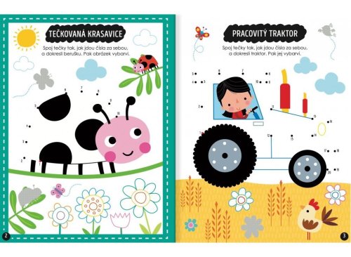 Tato kniha plná hledaček a úloh, které zaujmou každou chytrou hlavičku, podporuje tvořivé hraní i fantazii s vytlačovacími obrázky a více než 250 samolepkami. S touto knihou plnou aktivit se děti rozhodně nudit nebudou! S tužkou a pastelkami navštíví zvířata v lese a na louce, vydají se na výlet balonem i raketou, postaví úžasný hrad z písku, oslaví s jednorožci narozeniny a ještě spoustu dalšího! Úkoly vhodně uzpůsobené věku dítěte napomáhají s koordinací oka a ruky, rozvíjí logické myšlení a podporují tvořivé hraní. V knize malí zvědavci naleznou i vytlačovací visačku na dveře, přání a více než 250 samolepek, které mohou použít v této knize nebo je nalepit, kamkoli budou chtít.