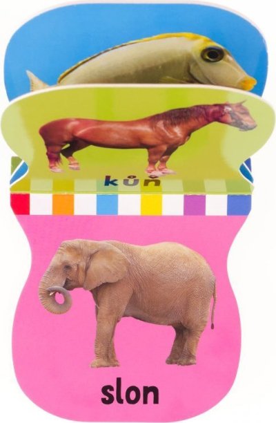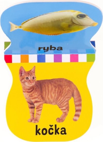 První knížka pro miminka a zároveň kousátko i chrastítko. Obsahuje realistické fotografie nejběžnějších zvířat, která mohou malé děti vídat a popisky.
