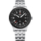 Pánské náramkové hodinky Napájení z baterie Průměr pouzdra 42,0 mm Pouzdro ve tvaru kruhu Ocelové pouzdro Stříbrná barva pouzdra Ocelový tah Stříbrná barva tahu Ručičkový ciferník Černá barva ciferníku Ciferník s arabskými čísly Materiál skla - safírové sklo Odolné proti vodě během sprchování a mytí Datum Druhý čas