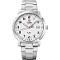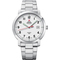 Pánské náramkové hodinky Napájení z baterie Průměr pouzdra 40,0 mm Pouzdro ve tvaru kruhu Ocelové pouzdro Stříbrná barva pouzdra Kovový tah Stříbrná barva tahu Ručičkový ciferník Bílá barva ciferníku Ciferník s dvanácti indexy Materiál skla - minerální sklo Odolné proti vodě během sprchování a mytí Datum