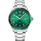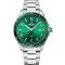 Pánské náramkové hodinky Napájení z baterie Průměr pouzdra 42,0 mm Pouzdro ve tvaru kruhu Ocelové pouzdro Stříbrná barva pouzdra Kovový tah Stříbrná barva tahu Ručičkový ciferník Zelená barva ciferníku Ciferník s dvanácti indexy Materiál skla - minerální sklo Odolné proti vodě během sprchování a mytí Datum