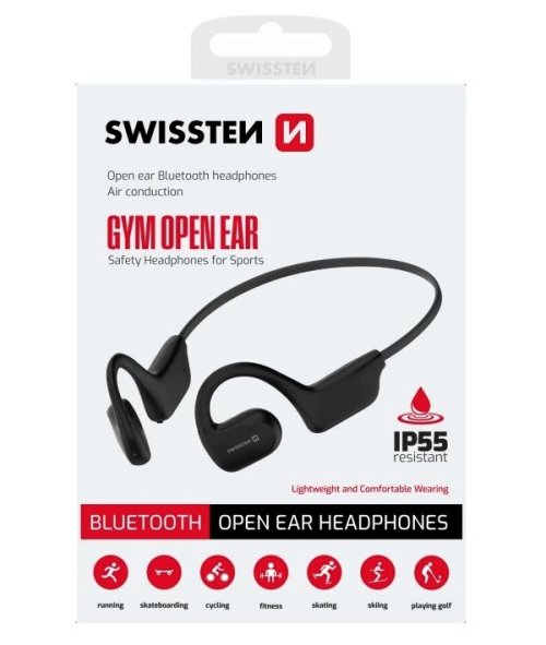 S headsetem SWISSTEN GYM OPEN EAR na uších můžete vyrazit ven i za deště. Je odolný vůči vodě a potu dle stupně krytí IP55. Stabilní bezdrátové připojení zajišťuje technologie Bluetooth 5.3. Dotykové ovládání umožňuje jednoduché přepínání skladeb, přijímání hovorů, a dokonce také spuštění hlasového asistenta.