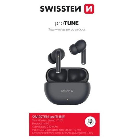 Bezdrátová sluchátka SWISSTEN proTUNE v lehkém designu, která jsou určena pro komfortní poslech na cestách. Jejich váha dosahuje pouhých 2× 3,2 g a díky malým rozměrům se pohodlně nosí v uších po dlouhou dobu. Sluchátka SWISSTEN proTUNE podporují rovněž jednoduché ovládání hudby a umožní vám pozastavení přehrávání nebo změnu skladby. Bezdrátové připojení zajišťuje technologie Bluetooth 5.0, díky čemuž je spárování se smartphonem, tabletem nebo notebookem rychlé a stabilní. Součástí sluchátek je také integrovaný mikrofon, který vám umožní snadné a efektivní vyřizování mobilních hovorů. Nechybí ani praktické pouzdro, které kromě nabíjení plné také ochranou funkci při přenášení v kapse. Headset do uší SWISSTEN proTUNE zvládne až 3 hodiny kontinuální poslechu hudby, podcastů, audio knih, rozhlasového vysílání a dalšího audio obsahu.