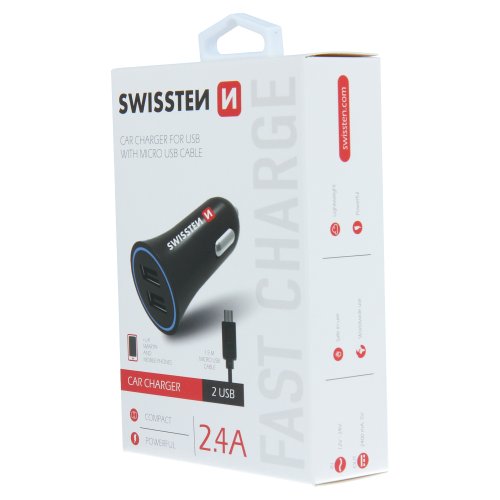 Kvalitně zpracovaná autonabíječka se dvěma konektory USB-A bez problémů dobije váš chytrý telefon díky výstupnímu proudu 2,4 A. Součástí balení je také 1,5 m dlouhý kabel USB-A na micro USB.