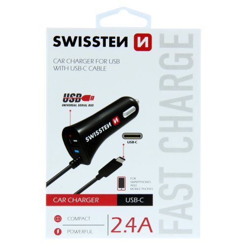 Kvalitně zpracovaná autonabíječka s konektory USB-A a USB-C bez problémů dobije váš chytrý telefon či tablet díky výstupnímu proudu 2,4 A, a to i současně.