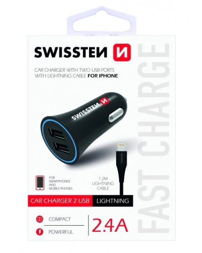 SWISSTEN napájecí adaptér 2× USB + Lightning kabel
