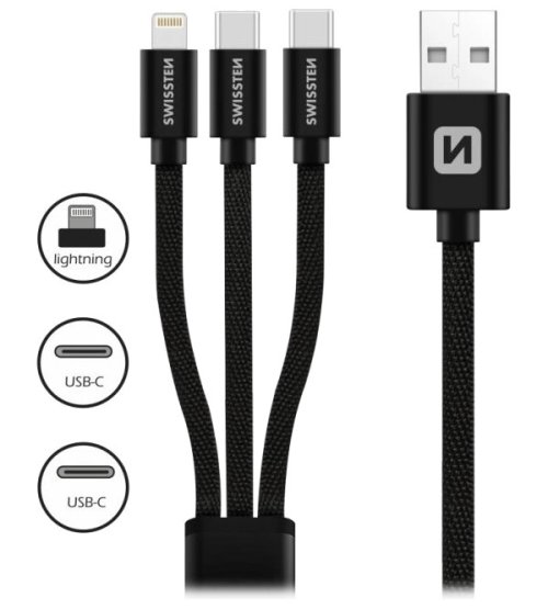 SWISSTEN TEXTILE datový kabel 3 v 1 1,2 m černý