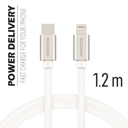 Datový kabel Swissten USB-C/Lightning s kvalitním textilním opletením. Díky délce 1,2m je vhodný do auta, na stůl v kanceláři nebo na noční stolek. Kabel je zesílený a přenese tak větší proud (až 3A) a zvládne i rychlý přenos dat 480 Mb/s. Je vhodný pro rychlé nabíjení smartphonů s technologií Power Delivery.