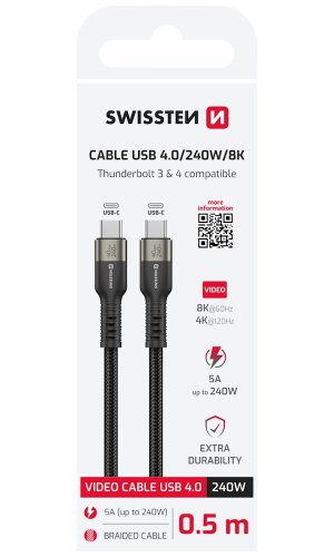 Vysoce výkonný datový a video kabel s podporou přenosu dat až 40 Gb/s a nabíjení výkonem až 240 W.