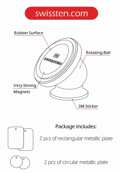 Magnetický držák do auta určený přímo na palubní desku. Rotační koule držáku umožňuje umístit vaše zařízení do libovolného úhlu.