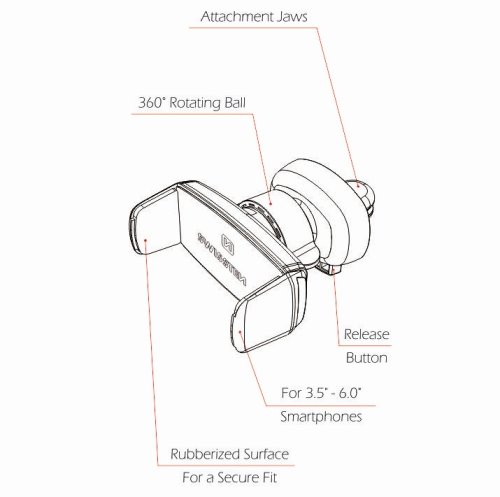 Univerzální držák pro zařízení o úhlopříčce 3,5" - 6" určený pro upevnění do ventilační mřížky. Díky speciálním čelistím drží v mřížce velmi pevně. Držák lze díky rotačnímu kloubu volně otáčet o 360°.
