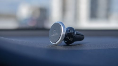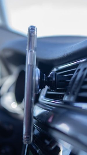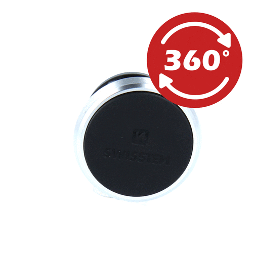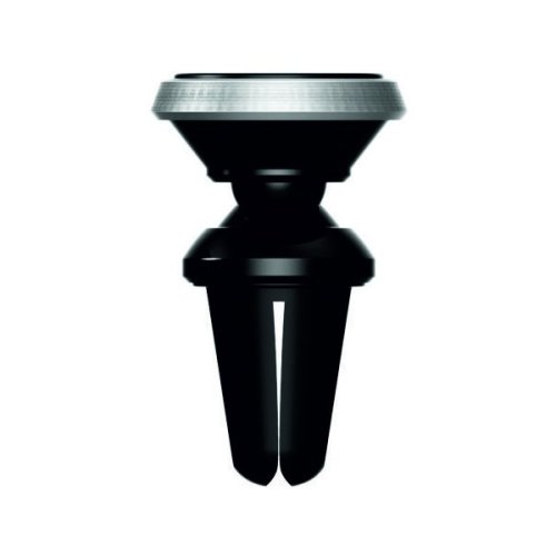 Kovový magnetický držák pro mobilní telefon určený pro upevnění do ventilační mřížky. Je opatřen šesti magnety a pogumovaným povrchem pro lepší zabezpečení telefonu. Držák lze díky rotačnímu kloubu volně otáčet o 360°.