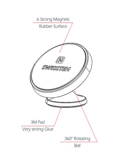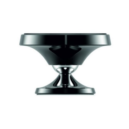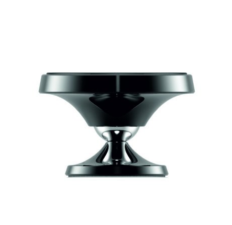 Kovový magnetický držák do auta v elegantním designu. Je opatřen šesti magnety a pogumovaným povrchem pro lepší zabezpečení telefonu. Držák lze díky rotačnímu kloubu volně otáčet o 360°. Díky flexibilní podložce s 3M nálepkou velice pevně drží i na zakřivené palubovce.