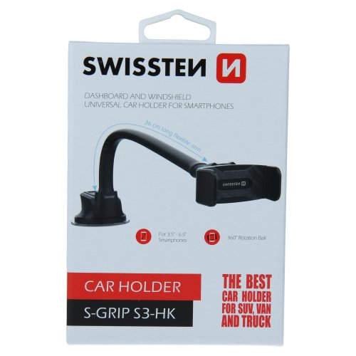 Univerzální držák pro smartphony o úhlopříčce 3,5" - 6" určený pro instalaci na čelní sklo či palubovku. Disponuje husím krkem o délce 36 cm, který lze libovolně nastavit.