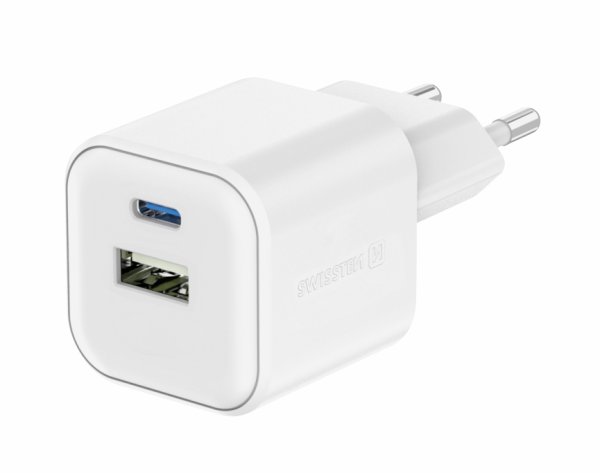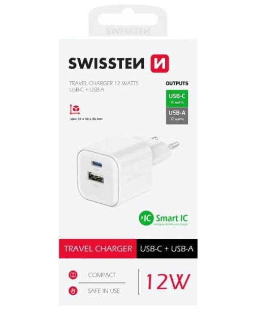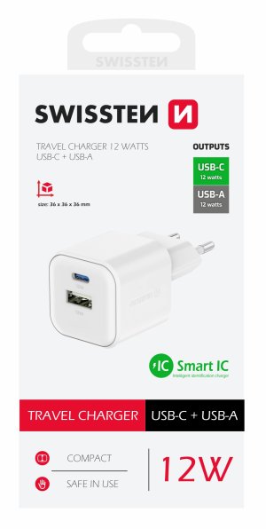 Swissten síťový adaptér 12W 1x USB-C + 1x USB-A bílý
