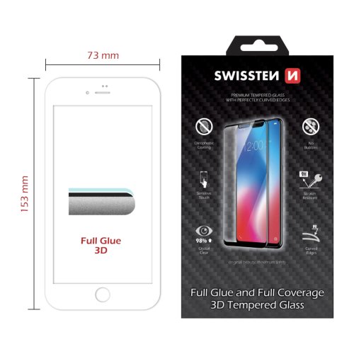 Tvrzené sklo SWISSTEN 3D FULL GLUE, které se vyznačuje 98% průhledností se také pyšní zachováním citlivosti při ovládání displeje.