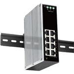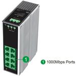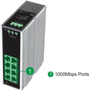 Switch namontujete na DIN lištu. Jelikož není vybavený ventilátorem, má tichý chod. LAN porty vám navíc zajistí přenosovou rychlost 10/100/1 000 Mbps. Napájení probíhá přes AC svorkovnici.