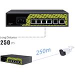 Rychlý ethernetový PoE switch Conexpro je vybavený celkem 6 LAN porty, z toho 2 patří mezi uplink porty. Perfektně se hodí pro použití v domácnostech a rodinných domech. Postará se o napájení až 4 zařízení s nízkou spotřebou – kamery či Wi-Fi přístupové body. Napájí je až na vzdálenost 250 m při snížené linkové rychlosti na 10 Mbps.