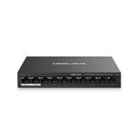 Se switchem Mercusys MS110P od TP-Link získáte stabilní připojení, které se hodí hlavně v menších firmách, ubytovnách nebo kancelářích. Poskytne vám 10 portů 10/100 Mbps, z nichž 8 umožňuje připojení PoE+. Zbylé 2 uplink porty slouží v režimu izolace pro připojení k internetu a NVR. K napájení a přenosu dat vám postačí jeden ethernetový kabel.