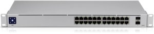 Řízený L2 switch Ubiquiti USW-24 je určený pro montáž do racku 1U a má celkem 24 LAN portů a dále se pyšní také 2 SFP porty s maximální přenosovou rychlostí až 1 GB/s pro další datové a telekomunikační aplikace. Auto MDI/MDI-X na všech portech eliminuje potřebu křížených kabelů nebo portů odchozího připojení, což uvítá kdejaký správce sítě. Připínač pracuje na 2. vrstvě (L2) takzvaného OSI modelu, takže přepíná síťovou komunikaci podle fyzických (MAC) adres připojených zařízení. Kromě standardní výbavy má switch integrovaný 1,3″ dotykový LCM displej pro jednoduché ovládání a poskytování informací o systému, teplotě či statistice portů.