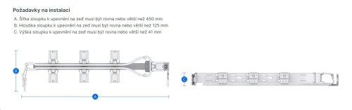 Výška sloupku k upevnění na zeď musí být rovna nebo větší než 41 mm