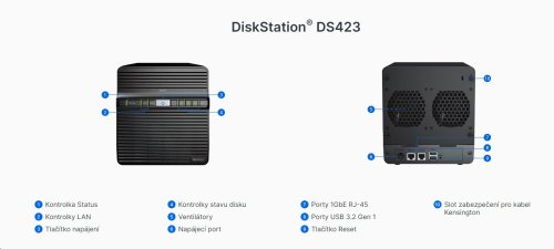 | Poznámky | Označení „Kompatibilní typ disku“ označuje disky, u kterých byla testováním prokázána kompatibilita s produkty Synology. Tento termín neoznačuje maximální rychlost připojení jednotlivých přihrádek na disky. | |