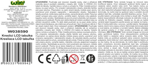 Kreslicí LCD tabulka. Velikost 30 cm. Obsahuje tablet, pero na kreslení, tlačítko na smazání obrazovky a zámek obrazovky. 1xCR2032 baterie součástí.