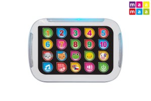Tablet dětský - mluví česky. Rozměry 19x13 cm. Světelné a zvukové efekty. 3xAAA baterie součástí. Aktivace tlačítkem v pravém dolním rohu. Výuka čísel, zvířat, melodie, změna jazyka, nastavení hlasitosti.
