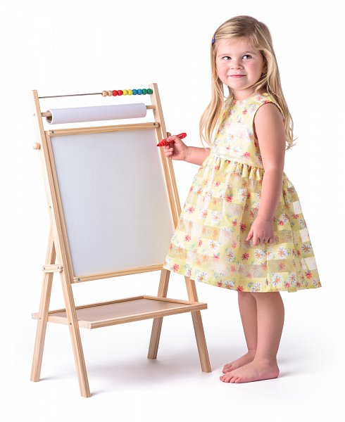 Magnetická oboustranná školní tabule v praktickém provedení s tyčkou pro roli papíru. Z jedné strany je tabule černá pro malování křídou a z druhé je bílá pro malování suchým fixem. Ve vrchní části tabule je umístěno jednoduché počítadlo. | Rozměr: 40,5 x 80,5 x 4,5 cm. Věk: 3+.
