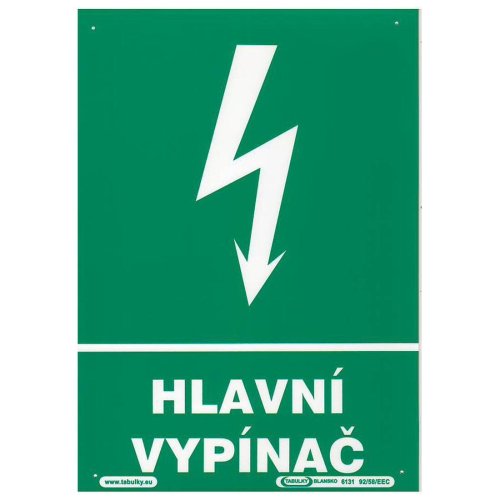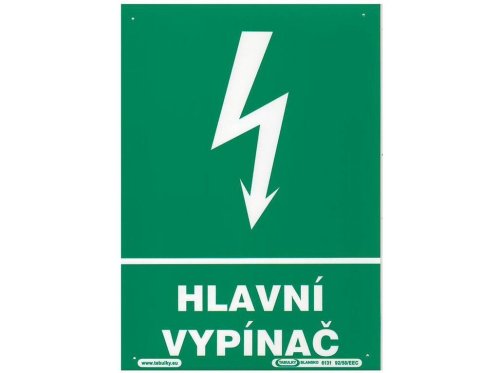 Tabulka - HLAVNÍ VYPÍNAČ 210 x 297 mm, (A 4), PH. rozměry: 210 x 297 mm materiál: plast Bezpečnostní tabulka, jejímž účelem je opatření a snížení rizik.