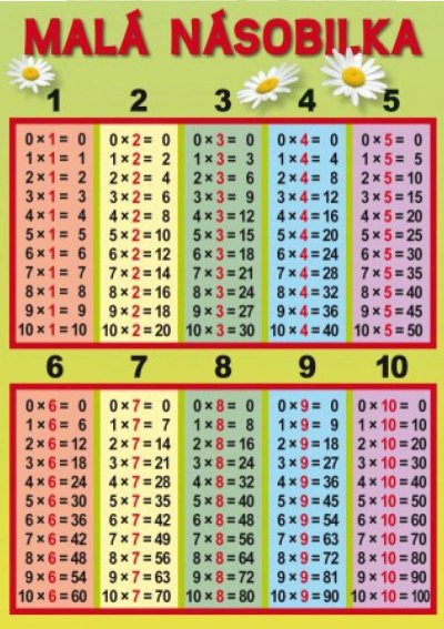 Tabulka malé násobilky a děleníKde se sloupeček protne s řádkem, tam je výsledek násobení.