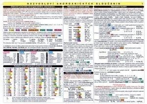 Jedinečná pomůcka pro výuku chemie na základních a středních školách. Na malém prostoru najdete velké množství přehledně uspořádaných dat z anorganické části chemie. Snadno se zorientujete v obecných pravidlech anorganického názvosloví. Budou vám lépe srozumitelná názvosloví a vzorce oxidů, hydroxidů kyselin, solí a dalších sloučenin. Zvládnete odvození vzorců ze zadaného názvu a pojmenování podle zadaného vzorce. Tabulka vám usnadní porozumět oboru, který na první pohled budí obavy. Formát A4, laminovaný křídový karton.