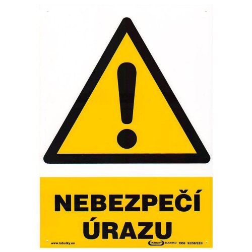Tabulka - NEBEZPEČÍ ÚRAZU ! 210 x 297 mm, (A 4), PH.
