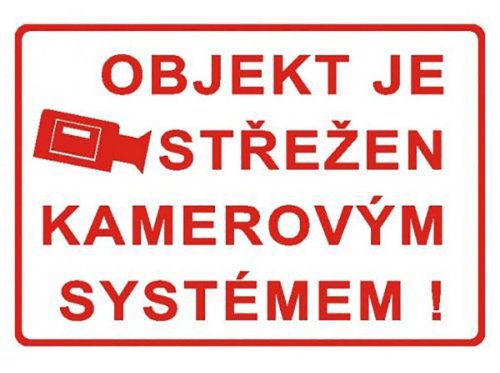Tabulka - OBJEKT STŘEŽEN KAMEROVÝM SYSTÉMEM ! 210 x 297 mm, (A 4), PH.