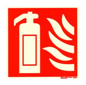 Tabulka - SYMBOL HASICÍ PŘÍSTROJ 148 x 148 mm, samolepicí.